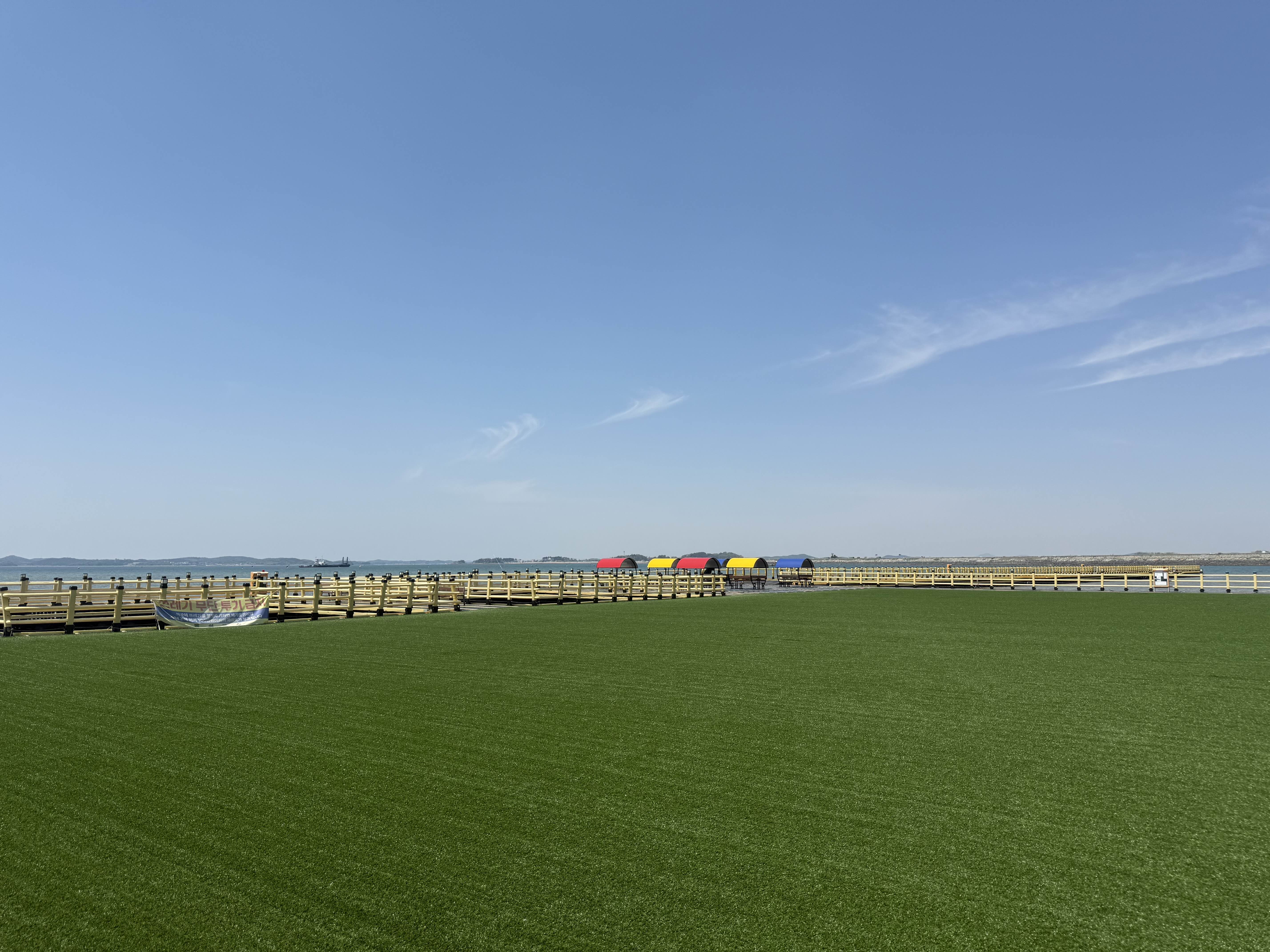 놀궁리 해상파크는 바다 위에 조성된 인공섬 같은 테마공원이에요. 인조잔디가 깔린 넓은 광장과 쉼터, 포토존이 잘 꾸며져 있어서 아이들은 신나게 놀고, 어른들은 여유롭게 앉아 바다를 감상할 수 있어요.