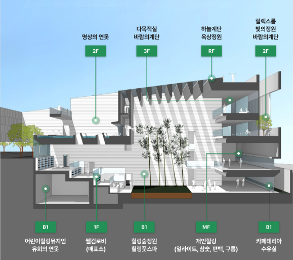 - 어르신을 위한: 족욕장, 명상존, 아로마 힐링존