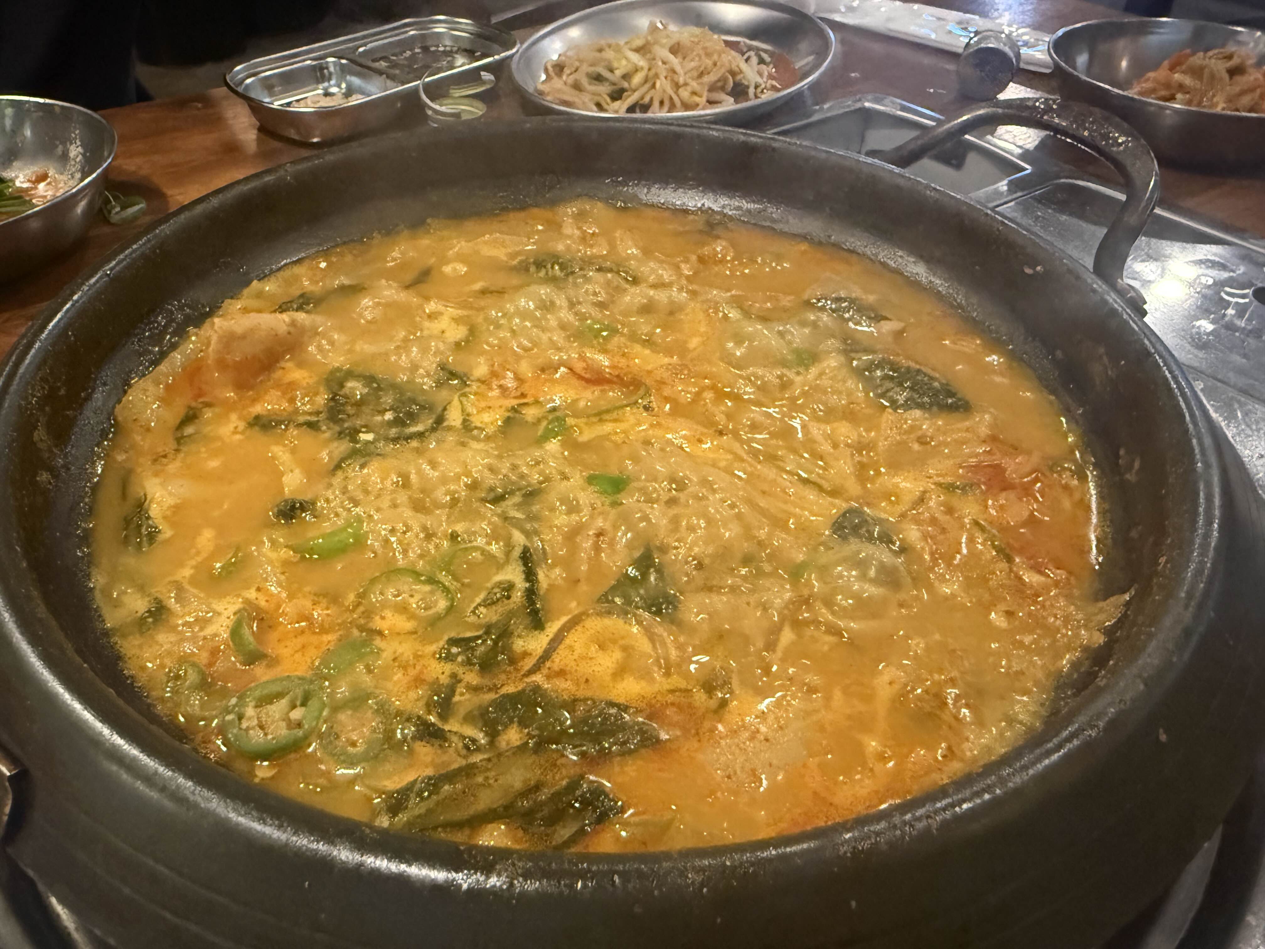 마무리로 먹은 곱창전골, 제기준으로 좀더 빨갛고 칼칼하면 좋을 것 같았어요. 맛은 좋은데 색이 연해서 비쥬얼적으로 땡기지않더라구요. 청양고추 추가요청해서 한접시 듬뿍넣으니 색은 연해도 칼칼하니 소주한평뚝딱 들어가더라구요.