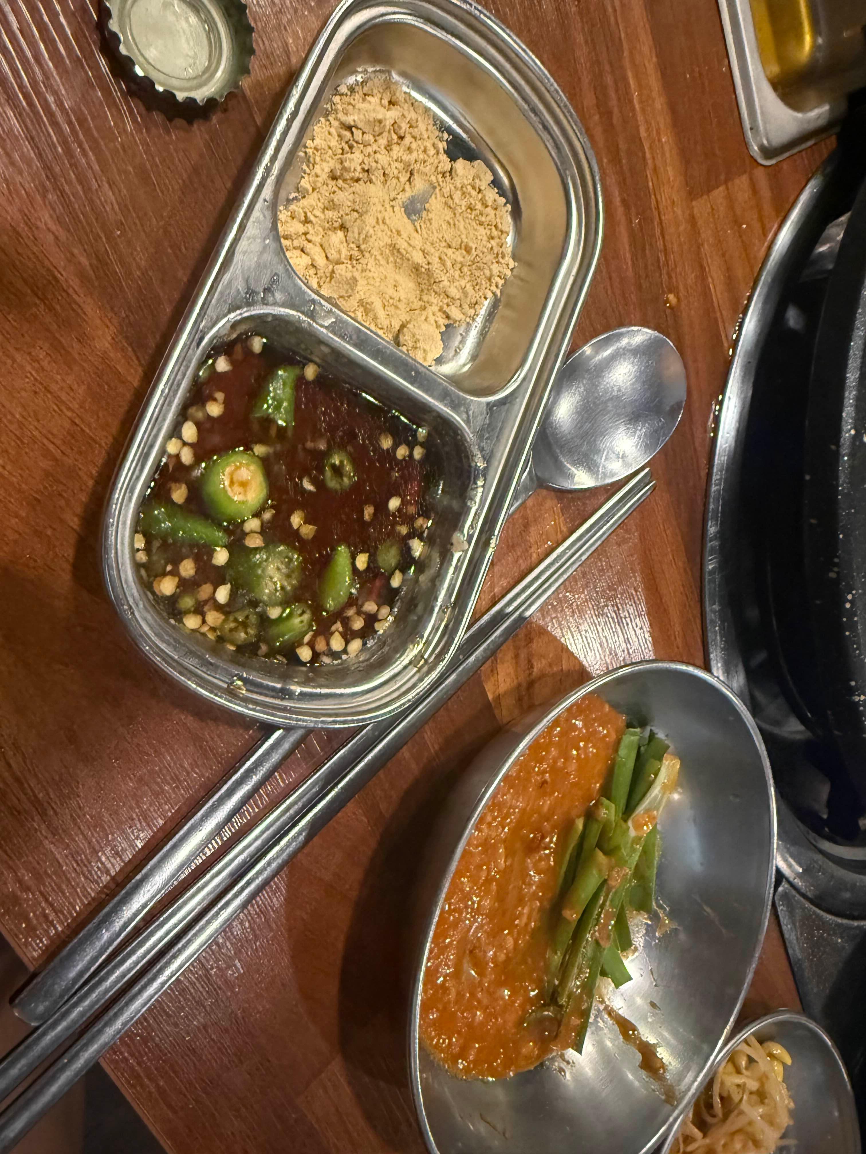 쌈장과 들깨가루, 간장소스까지 곱창에 딱 맞는 조합으로 준비돼 있었어요.